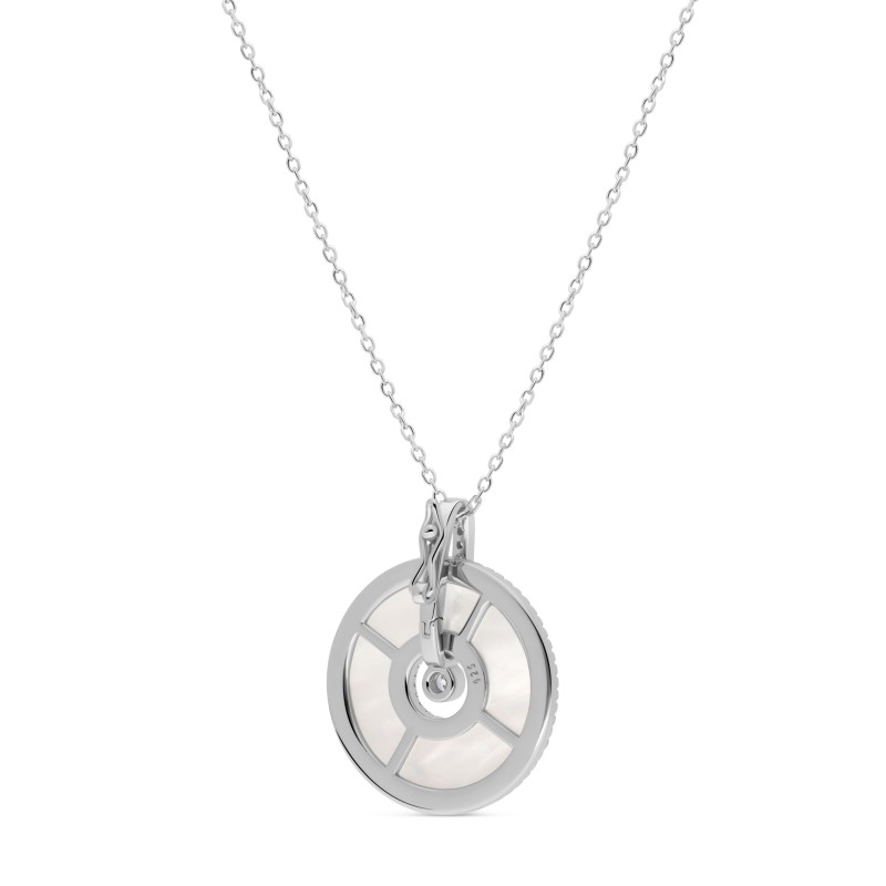 Offrez-vous un bijou unique qui raconte votre histoire, avec ce collier cible en argent et nacre sertie à personnaliser.