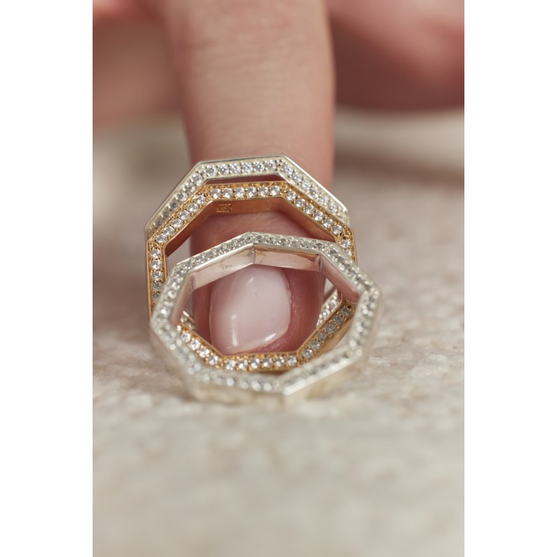 La bague Twinnie blanche or est un véritable joyau de la collection Little Boo x Sabrina Cesari. Son design octogonal audacieux et minimaliste en fait une pièce incontournable pour toute femme souhaitant affirmer son style avec subtilité. Plaquée or 18 carats et sertie de strass étincelants, cette bague apporte une touche de luxe à votre quotidien tout en restant délicieusement abordable.